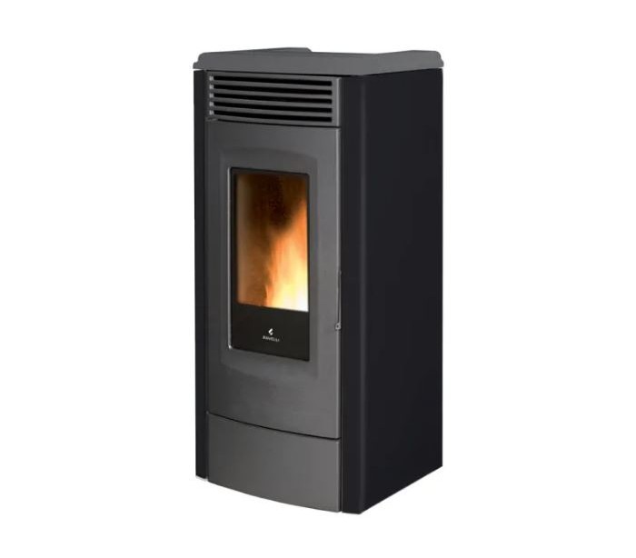 Télécommande avec un thermostat integré pour l‘allumage, l‘arrêt et la régulation du poêle même à distance et dans les autres pièces de l’habitation.