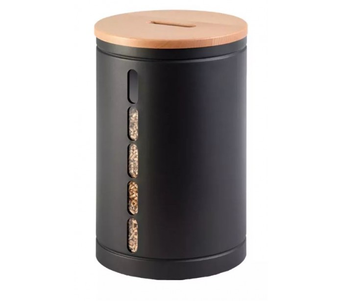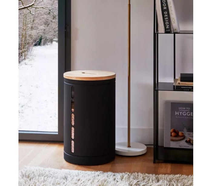 Design élégant et pratique – La réserve à granulés Octaris combine un design épuré et un couvercle en bois naturel, apportant une touche chaleureuse à votre intérieur. Sa forme cylindrique et sa fenêtre de visualisation permettent de suivre facilement le niveau de granulés restants.